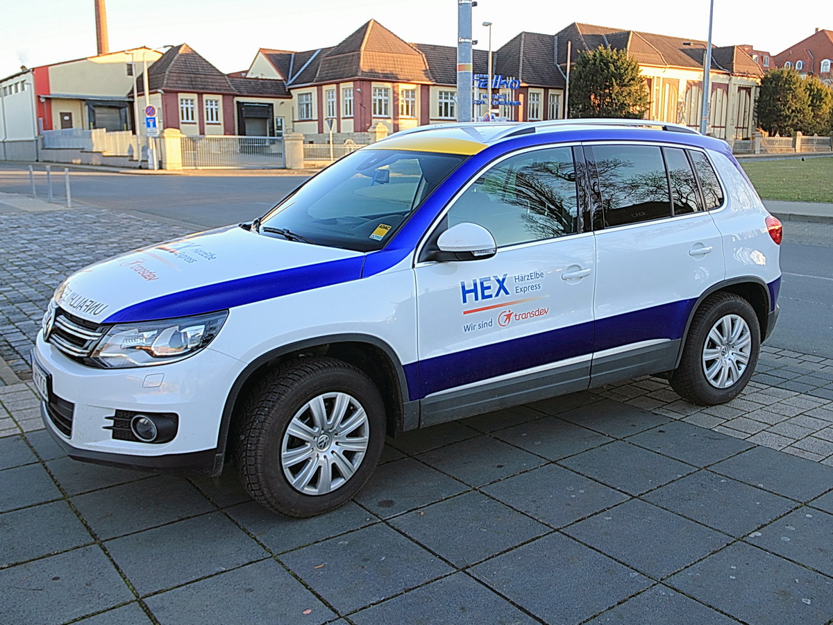 Volkswagen Tiguan. Firmenwagen mit Beschriftung unter anderem als Unfallhilfsfahrzeug, gesehen am 02. Dezember 2016 in Halberstadt auf dem Bahnhofvorplatz.