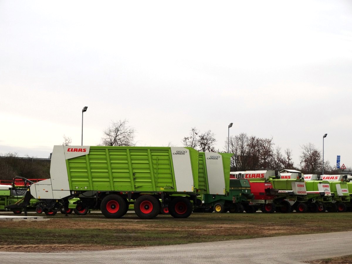 Zwei Claas Cargos 9500 am 13.12.14 im Claas Zentrum Hockenheim über den Zaun fotografier