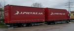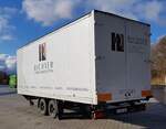 =Tandemachsanhänger der RICHTER-Möbelwerkstätten steht auf einem Rastplatz an der A 7, 11-2021