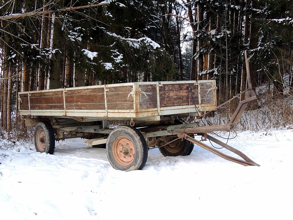 Landwirtschaftlicher Anhänger wurde an einem Waldweg abgestellt; 121213