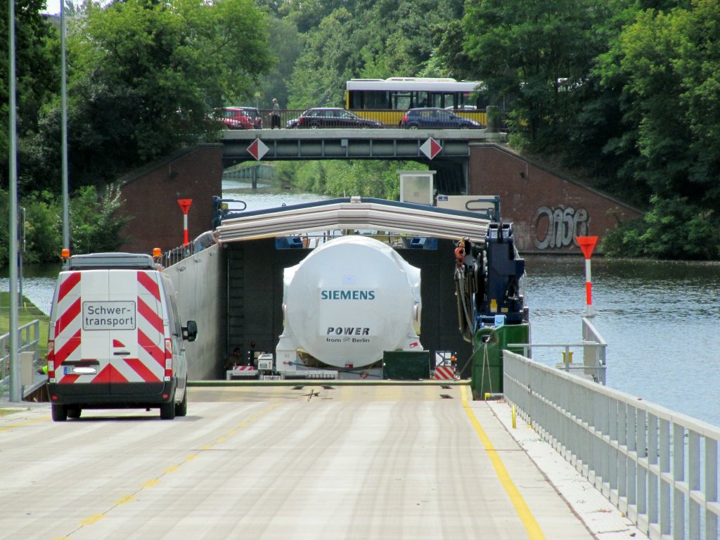 Das Goldhofer-Modulfahrzeug der Behala ist im Laderaum des GSL Ursus angekommen. 19.07.2013