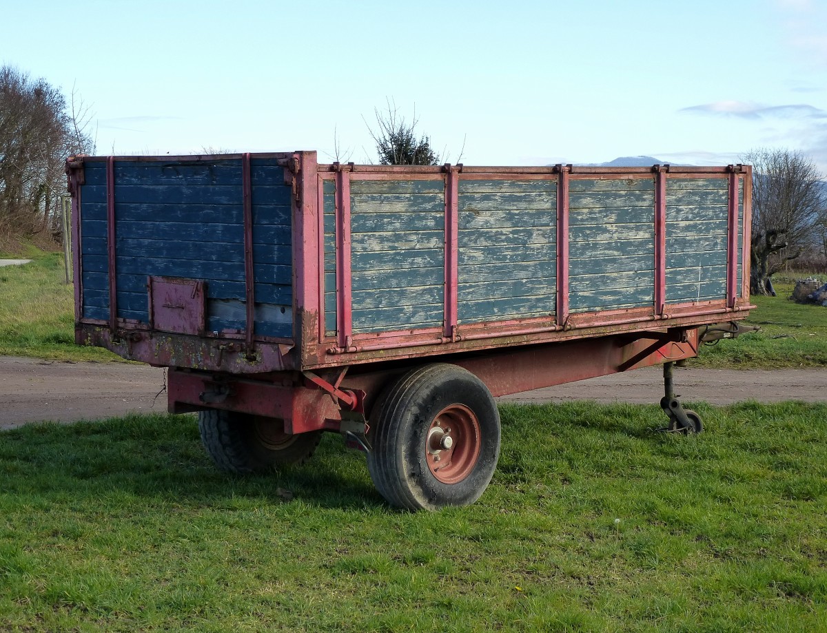 Anhänger mit Tandemachse und Kastenaufbau, steht zum Entladen bereit. 11.2025