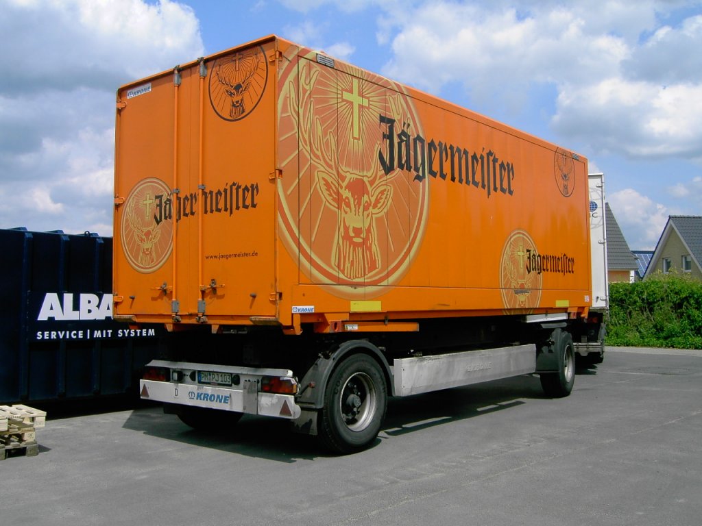 Anhänger von Krone mit bekannter Reklame, gesehen 02.08.2008 in Berlin.