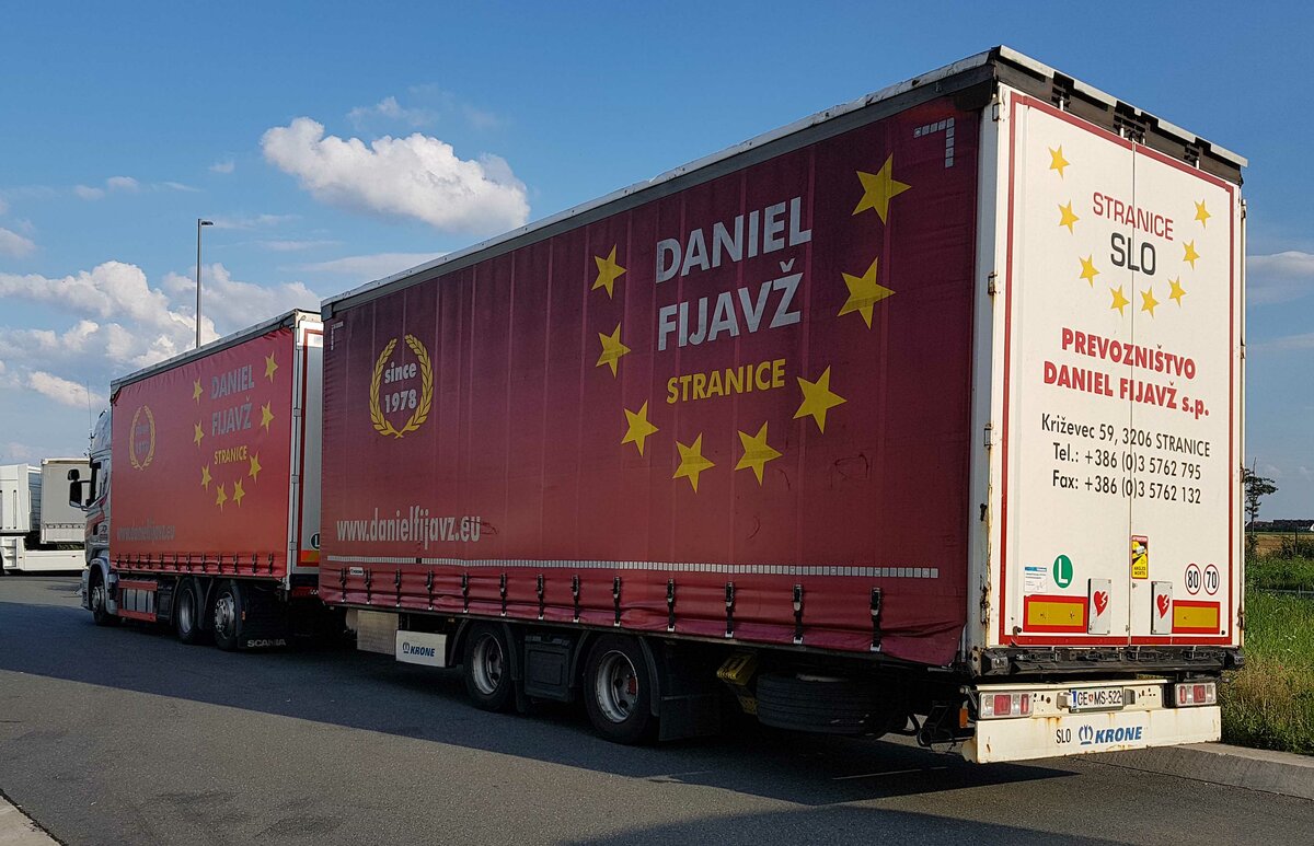 =Scania-Hängerzug der Spedition DANIEL FIJAVZ rastet an der A 3 im Juli 2021