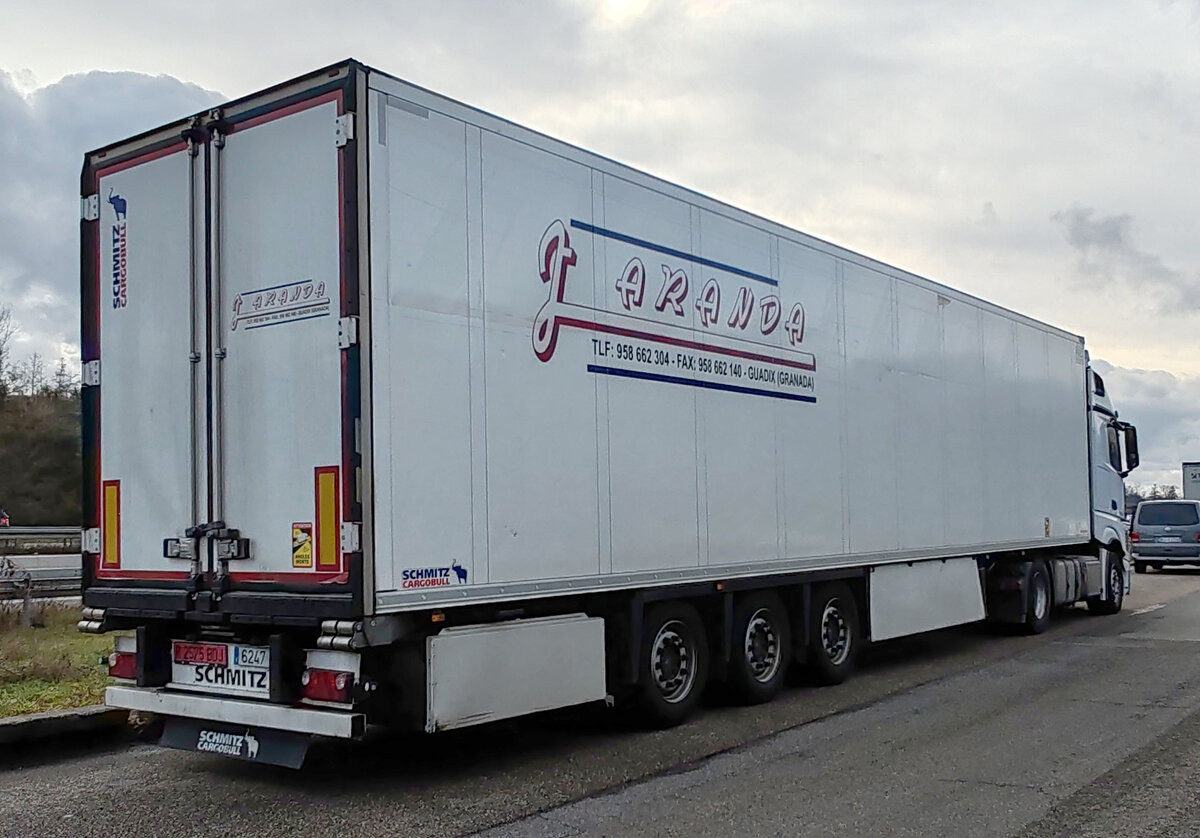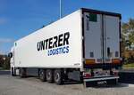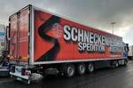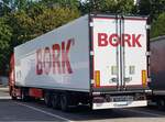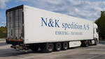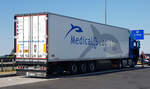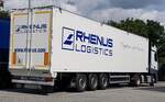 =MB-Sattelzug von RHENUS-Logistics steht auf einem Rastplatz im August 2023
