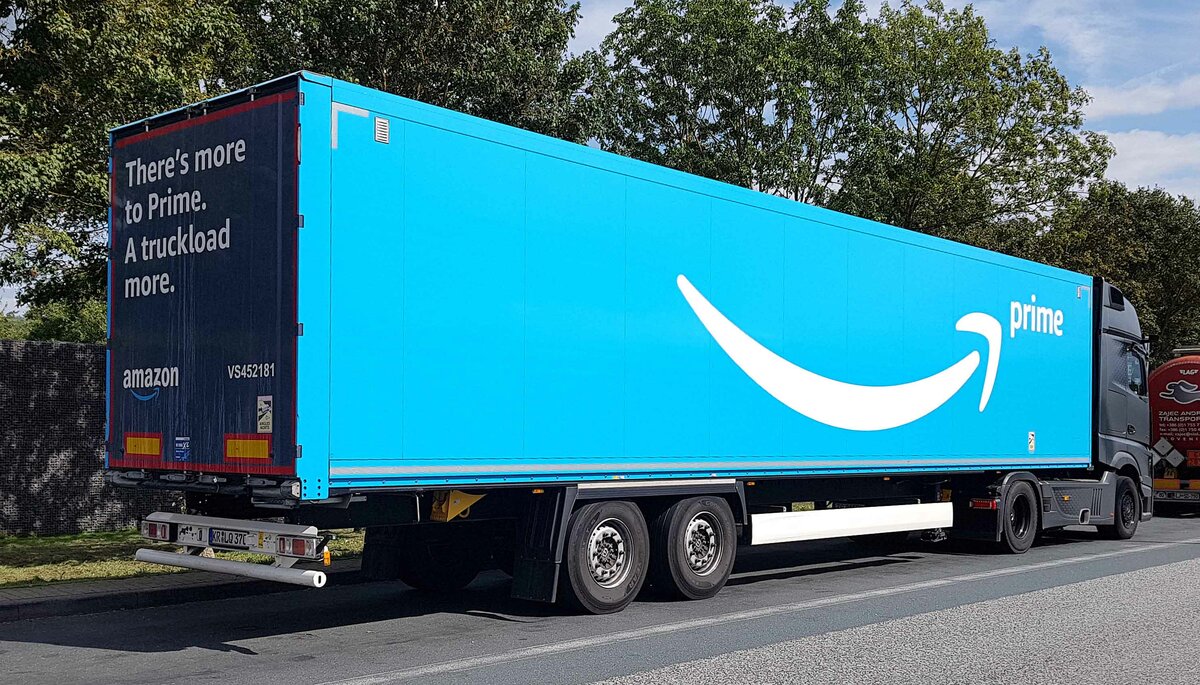 =MB Actros-Sattelzug mit einem Auflieger von AMAZON PRIME rastet im August 2023 an der Hunsrückhöhenstrasse