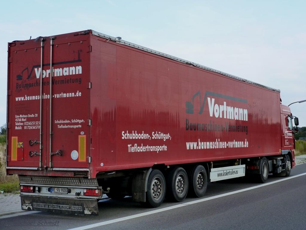 Vortmann Baumaschinen dunkel roter Schubboden Sattelauflieger mit roter DAF XF Zugmaschine 15,09,2012 in Marl