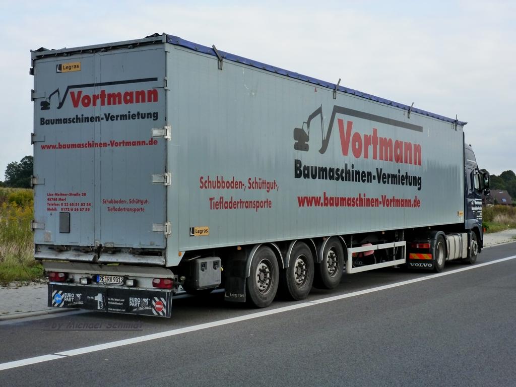Vortmann Baumaschinen grauer Schubboden Sattelauflieger mit VOLVO FH 440 Zugmaschine 15,09,2012 in Marl