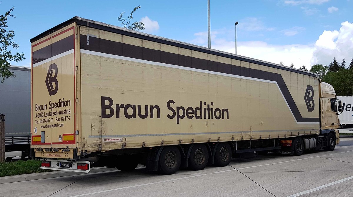 =DAF XF von "BRAUN SPEDITION" steht im Mai 2019 an der A 7