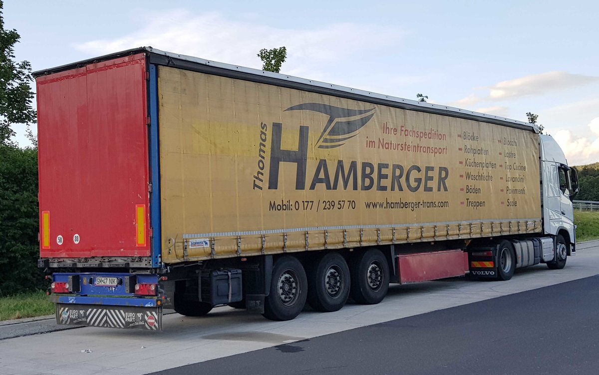 =Sattelauflieger der Spedition HAMBERGER, gesehen auf einem Rastplatz an der A 66