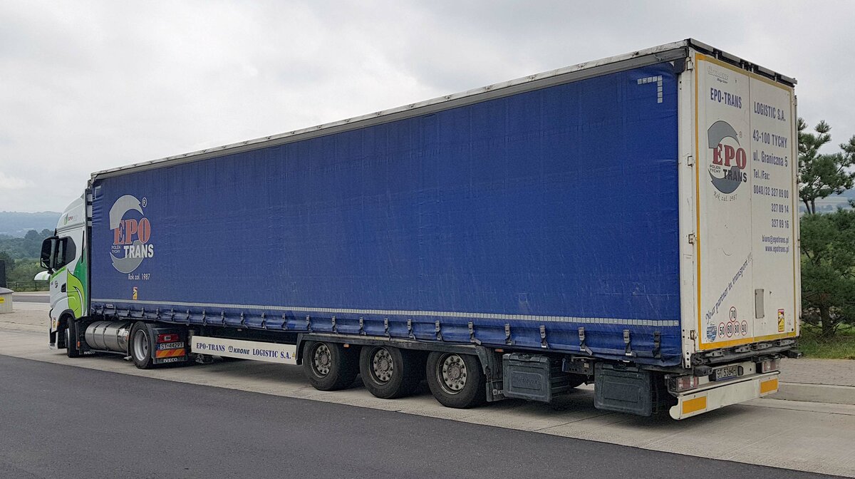 =Iveco S way-Sattelzug von EPO TRANS aus Polen rastet an der A 66, 07-2021