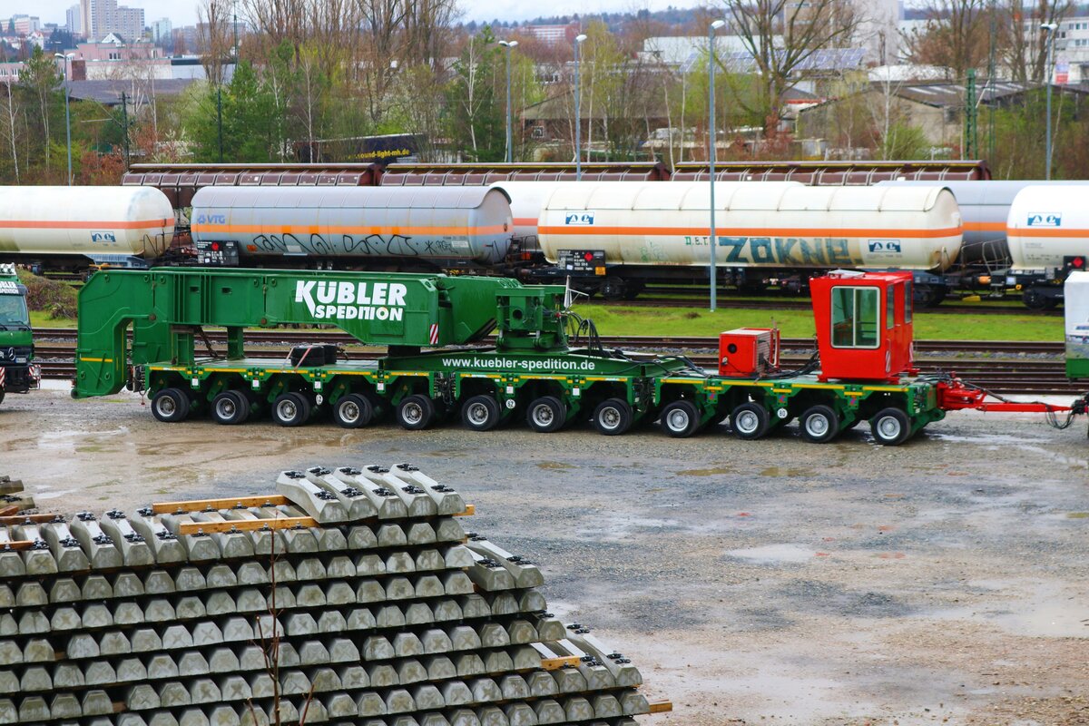 Spedition Kübler Kesselbrückenteil am 01.04.23 bei der Hafenbahn Frankfurt am Main von einer Brücke aus Fotografiert