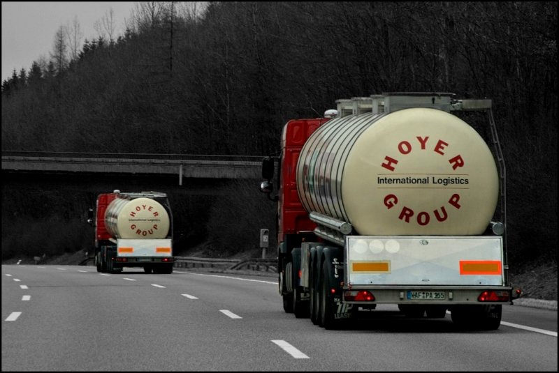 HOYER-Group Impression auf der A45. Zugmaschinen sind DAF´s. (24.02.2009)