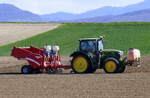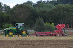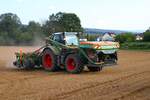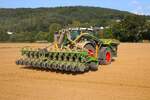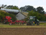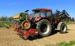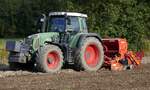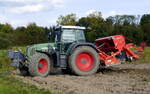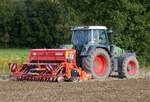 Allradschlepper von Fendt mit italienischer Drillmaschine von Gaspardo bei der Feldarbeit, Okt.2022