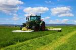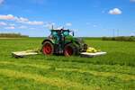 LU Norbert Mäser Fendt Vario 933 mit Claas Quadrant 5300FC am 11.06.23 beim Heuballen Pressen bei Glauberg in der Wetterau