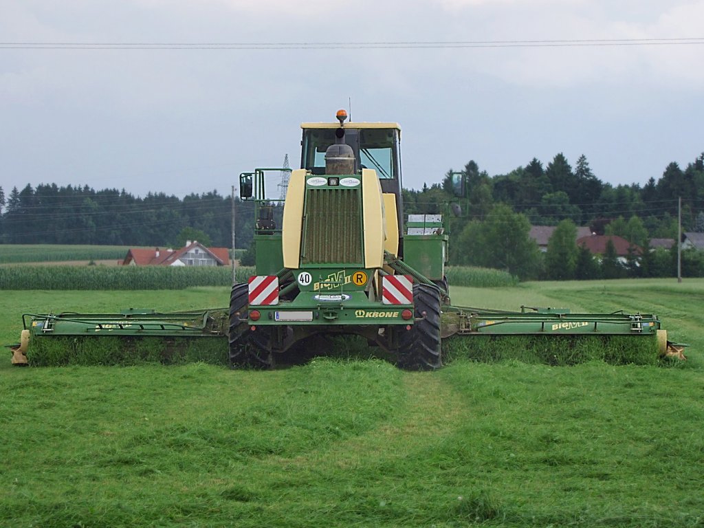 KRONE BIG-MII, ~360PS ;Mähwerksbreite ca. 9,70Mtr. hat nur noch ein Stückchen abzumähen ;100726