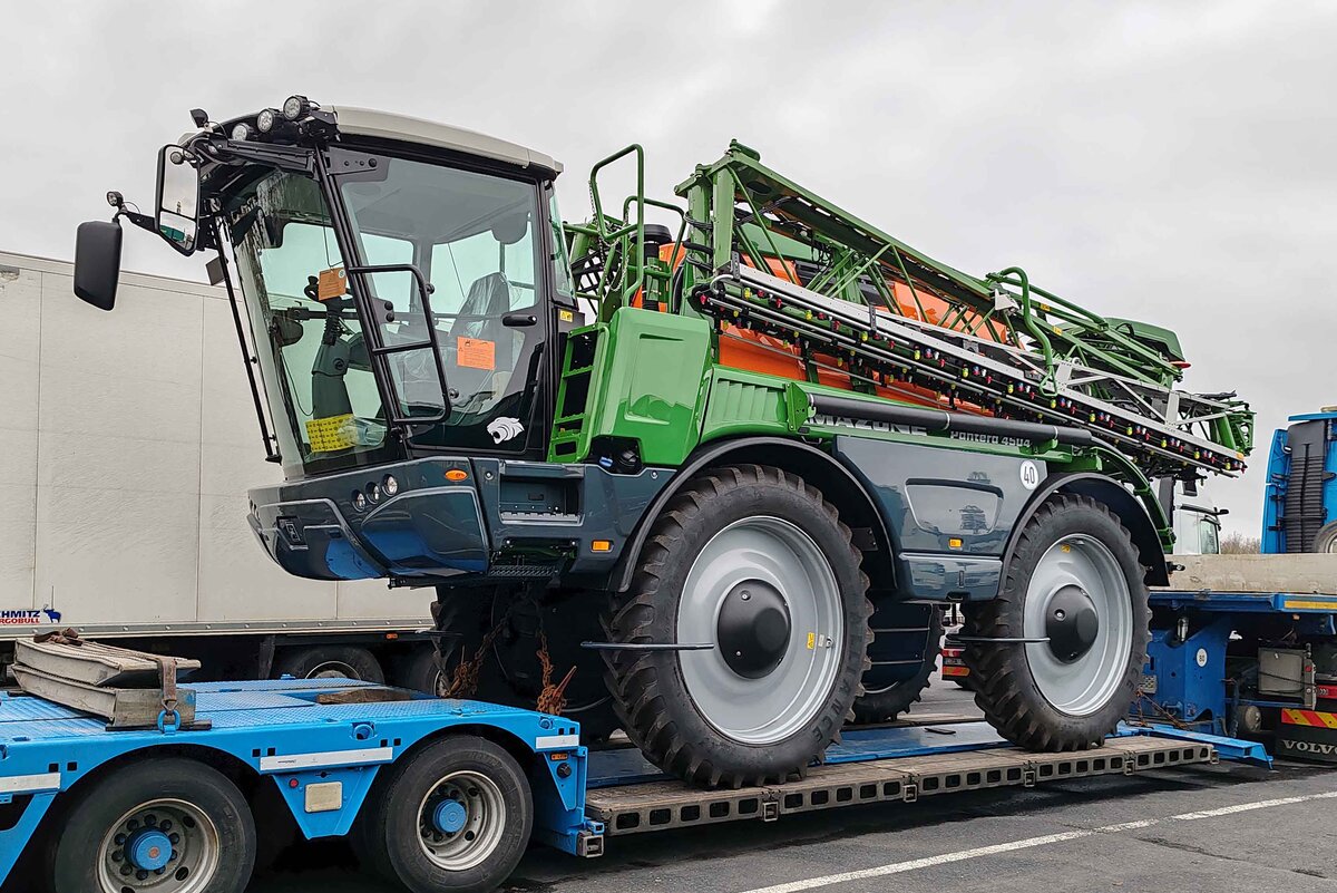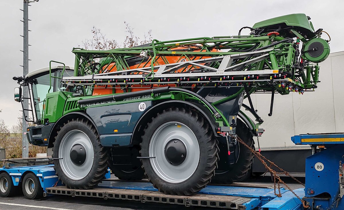 =Amazone Pantera 4504, eine selbstfahrende Feldspritze, unterwegs an ihren Bestimmungsort, 12-2023