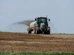 NEW-HOLLAND TS110A verbreitet mit dem Güllefass entsprechend flüssigen Dünger sowie ein paar Geruchsmomente entlang der Frühlingslandschaft; 180310