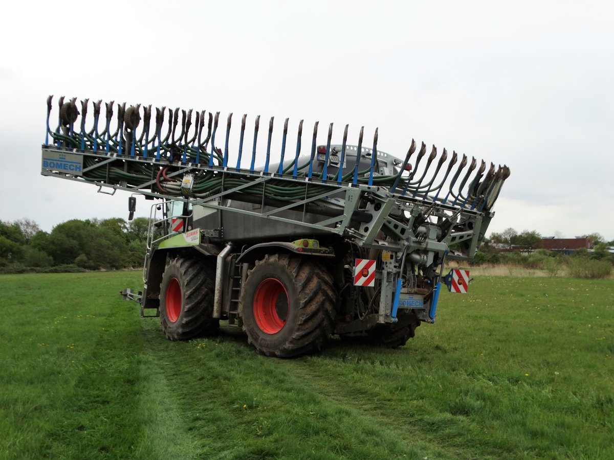 Lohnunternehmen Bauer Claas Xerion Saddle Trac mit Bomech Gülleanlage am 26.04.17 in Maintal