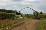 Claas Jaguar 970 und Deutz Fahr 7250 am 28.10.21 bei der Maisernte in der Wetterau