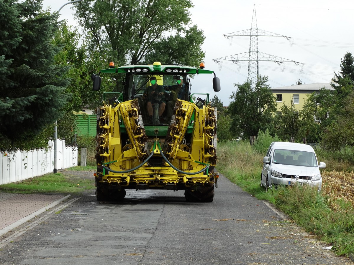 John Deere 8600i Maishäcksler im Straßenmodus am 28.09.15 bei Großkotzenburg