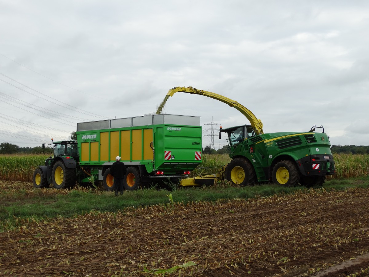 John Deere 8600i Maishäcksler und ein John Deere 6210R beim der Arbeiten am 28.09.15 bei Großkotzenburg