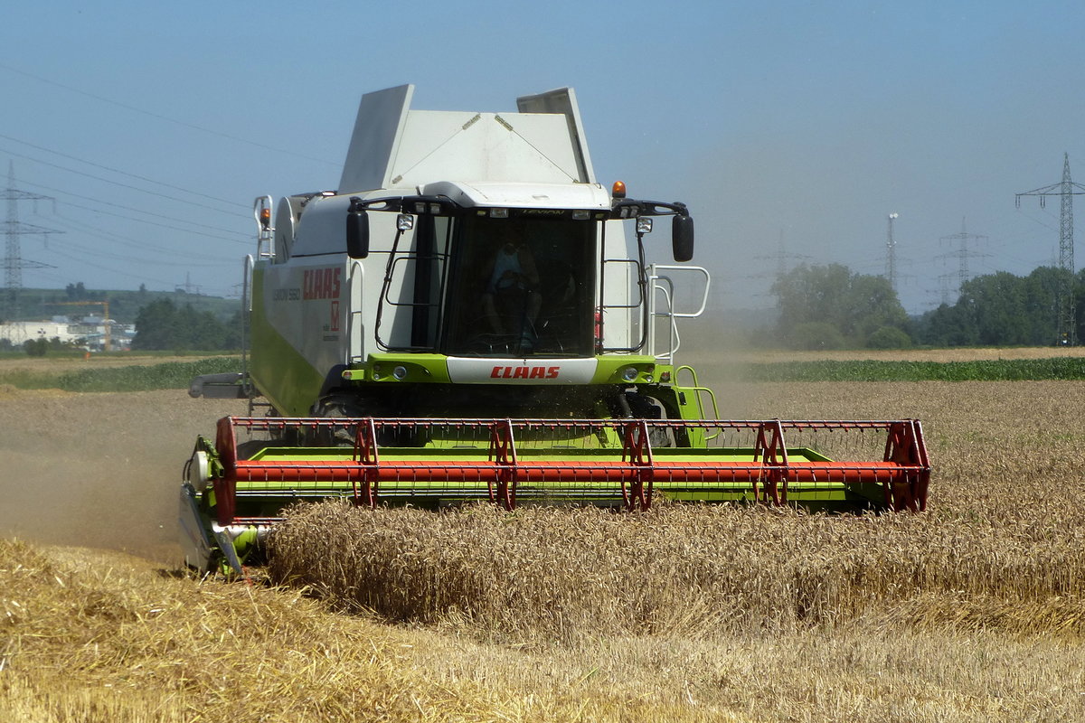 Claas Lexion 560, bei der Weizenernte in der Rheinebene, Juli 2016