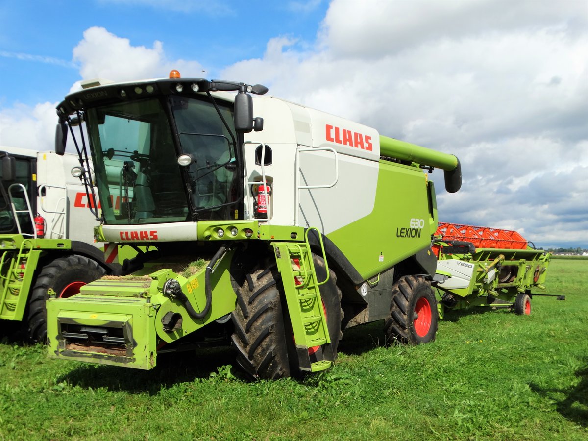 Ein Claas Lexion 630 am 09.09.17 bei Maintal auf einer Wiese