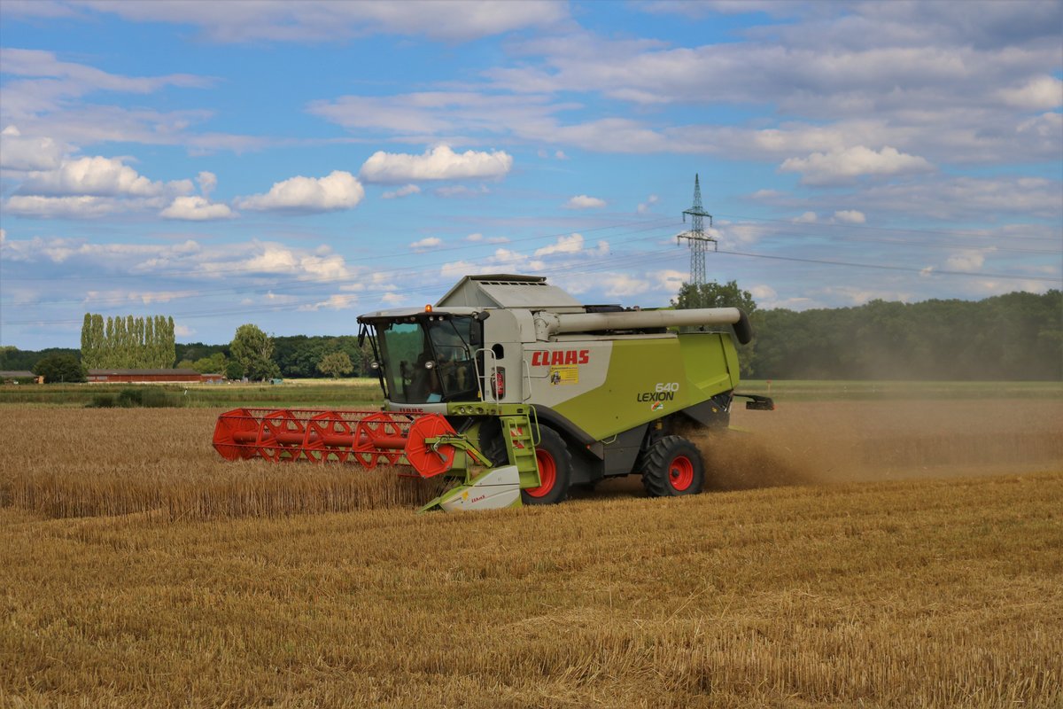 Claas Lexion 640 des Bodenverband Main Kinzig am 07.07.20 beim Roggen Dreschen bei Maintal Wachenbuchen