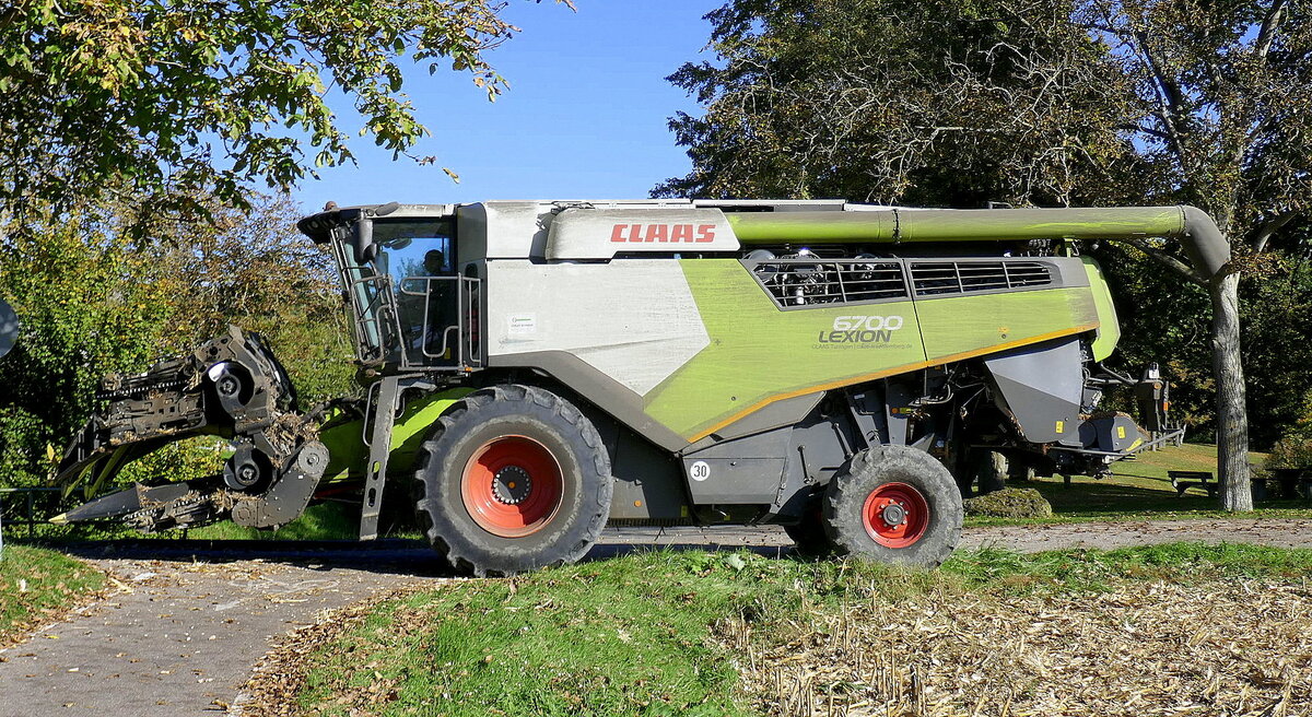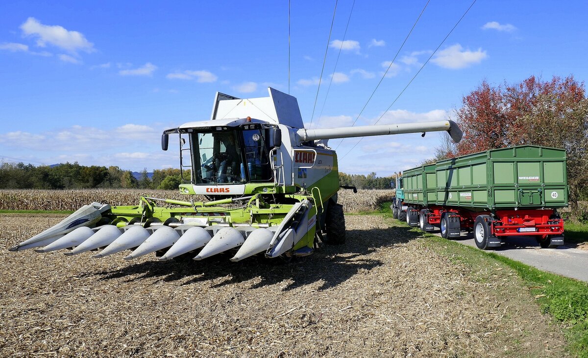Claas Lexion 420 wartet auf den nächsten Einsatz in der Getreideernte, Juli 2011