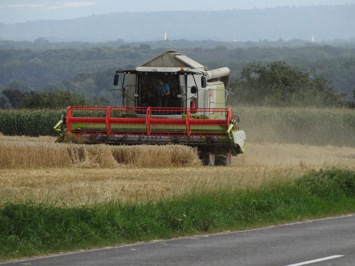 Claas Lexion 640 muss die Arbeit unterbrechen da es gerade anfängt zu Regnen am 24.07.14 in Maintal