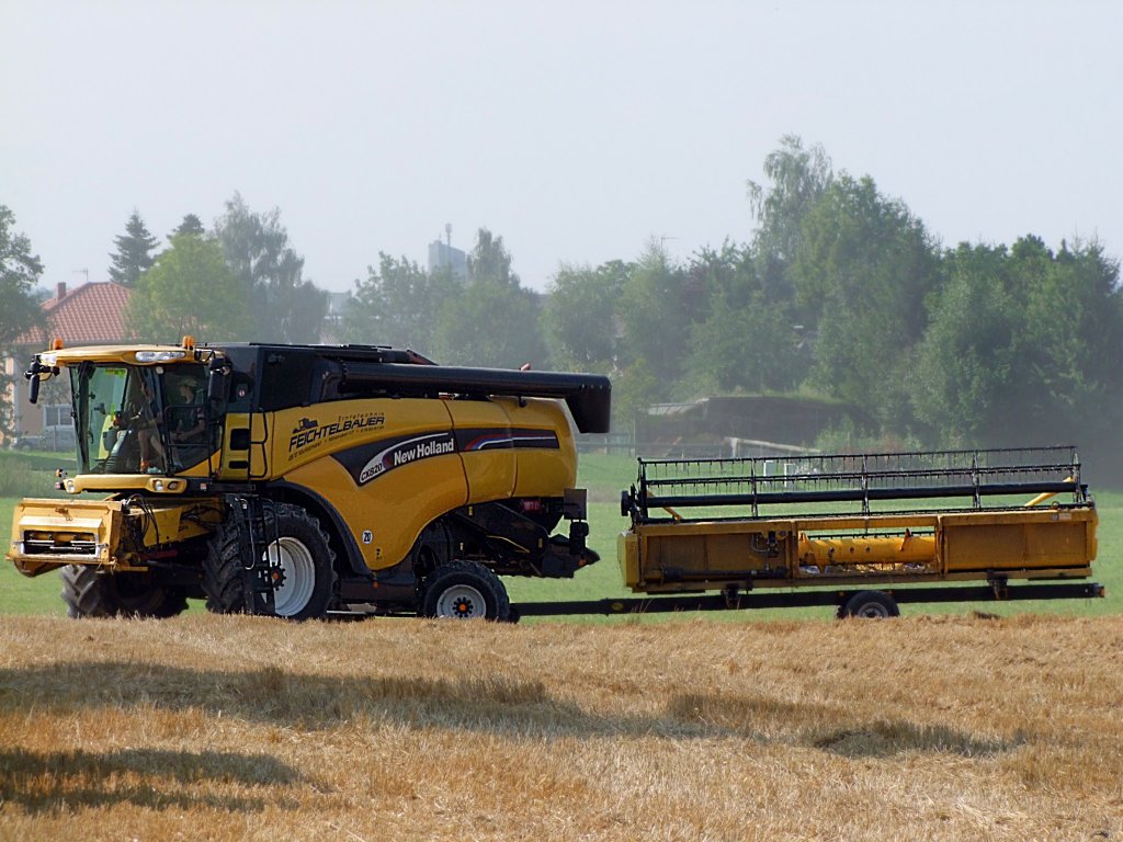NEW-HOLLAND_CX820 verlässt nach getaner Arbeit ein abgeerntetes Weizenfeld nahe Ried i.I.;090809
