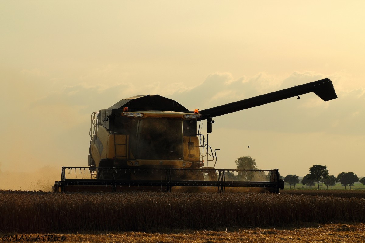 New Holland CR960 am dreschen während die Sonne langsam untergeht. (06.08.13)