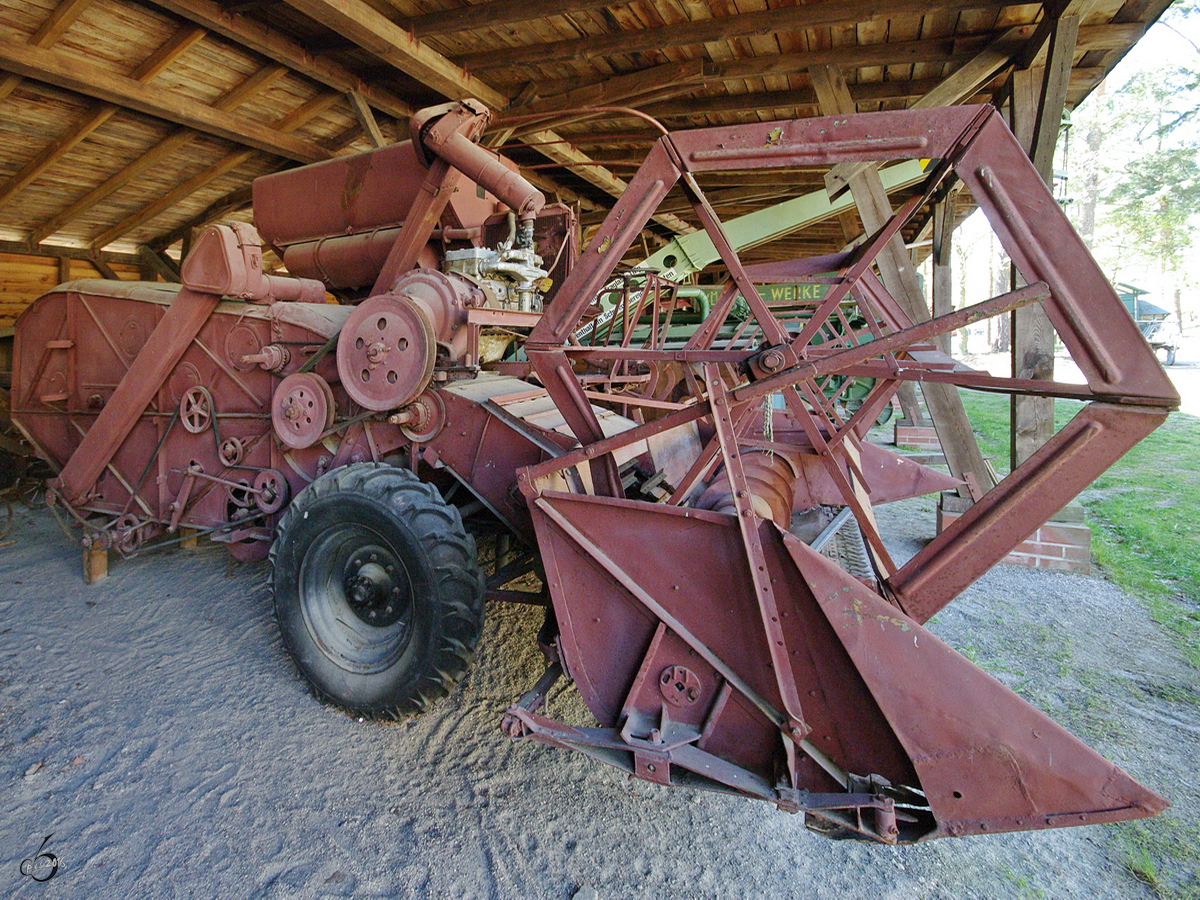 Ein Mähdrescher CC-2 Stalinez steht im Agroneum Alt Schwerin. (April 2009)