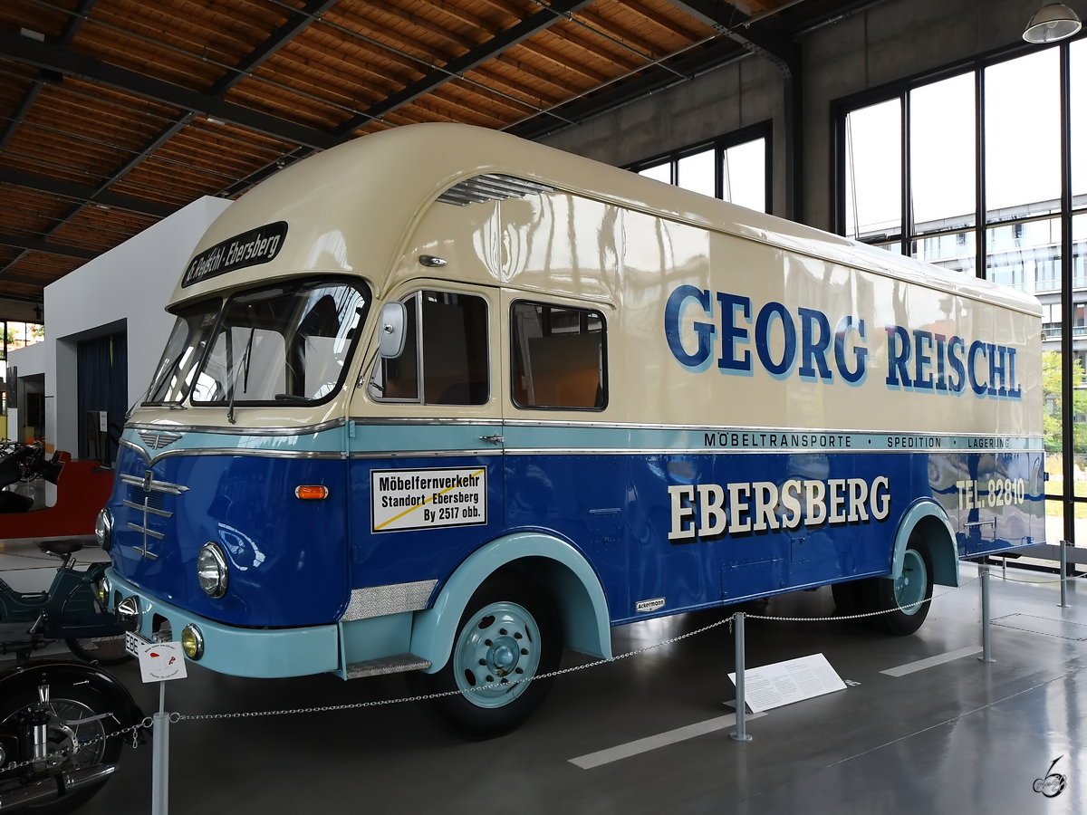 Dieser Büssing LKW mit Ackermann Aufbau für Umzüge stammt aus dem Jahr 1963. (Verkehrszentrum des Deutschen Museums München, August 2020)