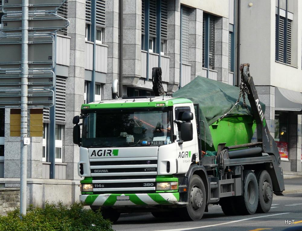 Scania 114G 380 Muldentransporter unterwegs in Zug am 20.08.2010