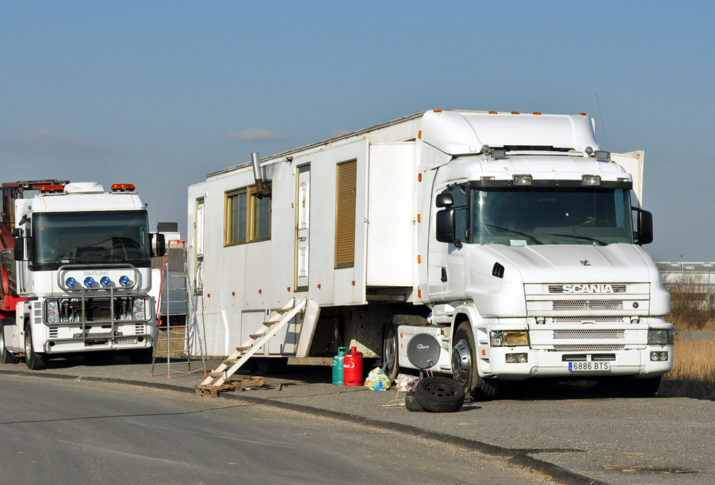 SCANIA-112H, sowie MB911 mit Tankwagenaufbau; haben ihre besten Einsatztage schon abgeleistet, und warten bei einer LKW-Werkstätte ggf. auf "ihr Gnadenbrot", (nach ein paar Tagen waren sie auch schon verschwunden); 200315