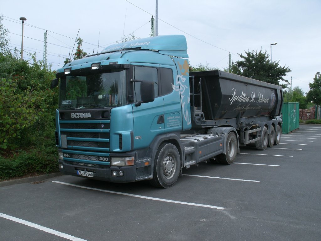 SCANIA Kipper,am 04.August 2013,bei der Sonntagsruhe in Bergen/Rügen.