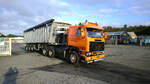 Hochfelden - 13. Oktober 2021 : Scania 143E mit einem Kippersattelzug.