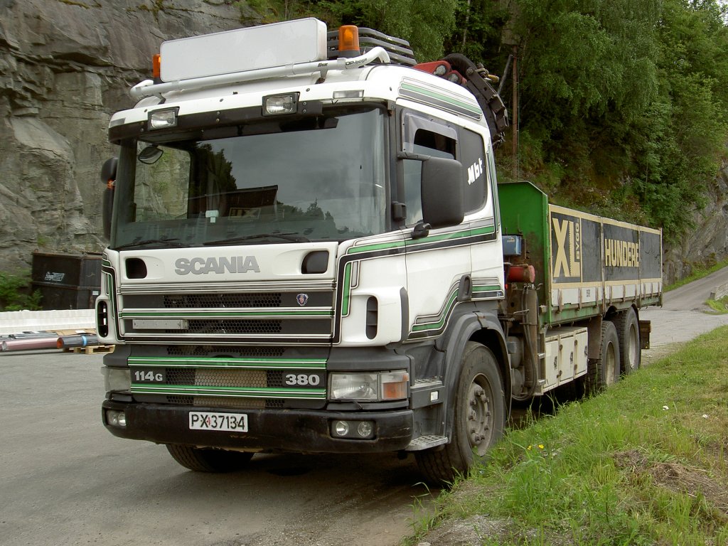 Scania 380 vor einem Baugeschäft in Sogndal, Norwegen (27.06.2013)