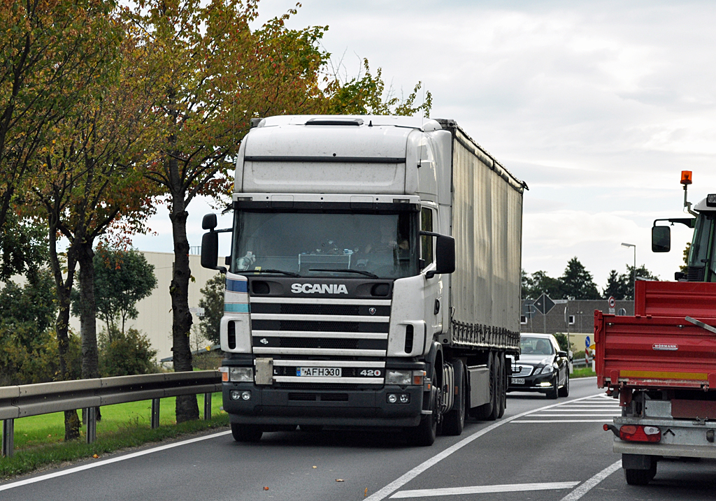 Scania 420 mit Pritschenauflieger bei Euskirchen - 09.10.2013