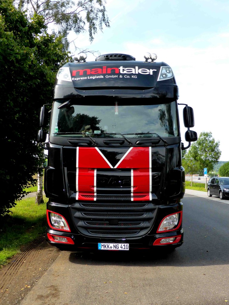 DAF XF der Spedition "maintaler" steht auf einem Parkplatz in Biebergemünd im August 2014
