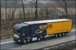 Durch das Schotterwerk Hohenlimburg wird die A46 zwischen Hagen und Iserlohn stark von Baufahrzeugen befahren. Ein DAF XF105.460 der Hartner Baustoffe&Schüttgutlogistik bringt Schotter in Richtung Hagen. Hartner hat sich auf den Transport von Baustoffen (Sand, Kiese, Schotter), Erden und Rindenmulch spezialisiert. Der Lieferberich umfasst das gesamte Ruhrgebiet und die angrenzenden Landkreise. (21.02.2009)