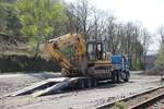 MTG Schwertransportgesellschaft mbH (Spedition Groß Kreutz) mit einem Schwerlastzug (Baumaschinetransport mit CAT Radlader) auf Ladebrücke und DAF XF 530 Zugmaschine am 16.09.22 Berlin Hohenschönhausen. Lothar Stöckmann