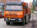MAN(TGA33.480)wurde gerade mit ausgemusterten Betonoberleitungsmasten beladen; 080523