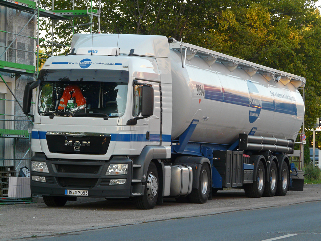 MAN TGS 18.440 mit Siloauflieger von "Schmidt Heilbronn" abgestellt in Nürnberg, 22.07.2012