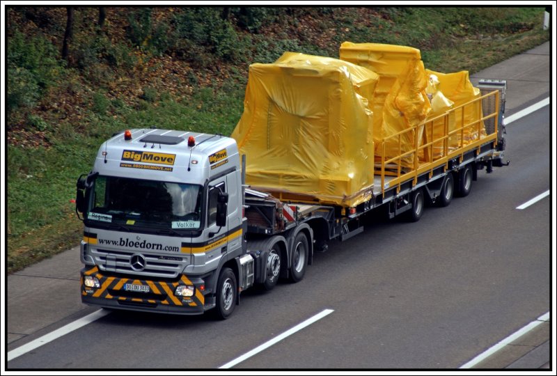 Actros 2546 der Spedition Bloedorn "BIG MOVE" ist in Richtung Ruhrgebiet unterwegs. (17.10.2008)