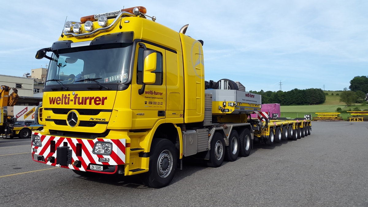 MB Actros MP3 4165 der Spezialtransportfirma Welti-Furrer am 10.06.2016 parkiert in Windisch AG (Schweiz).