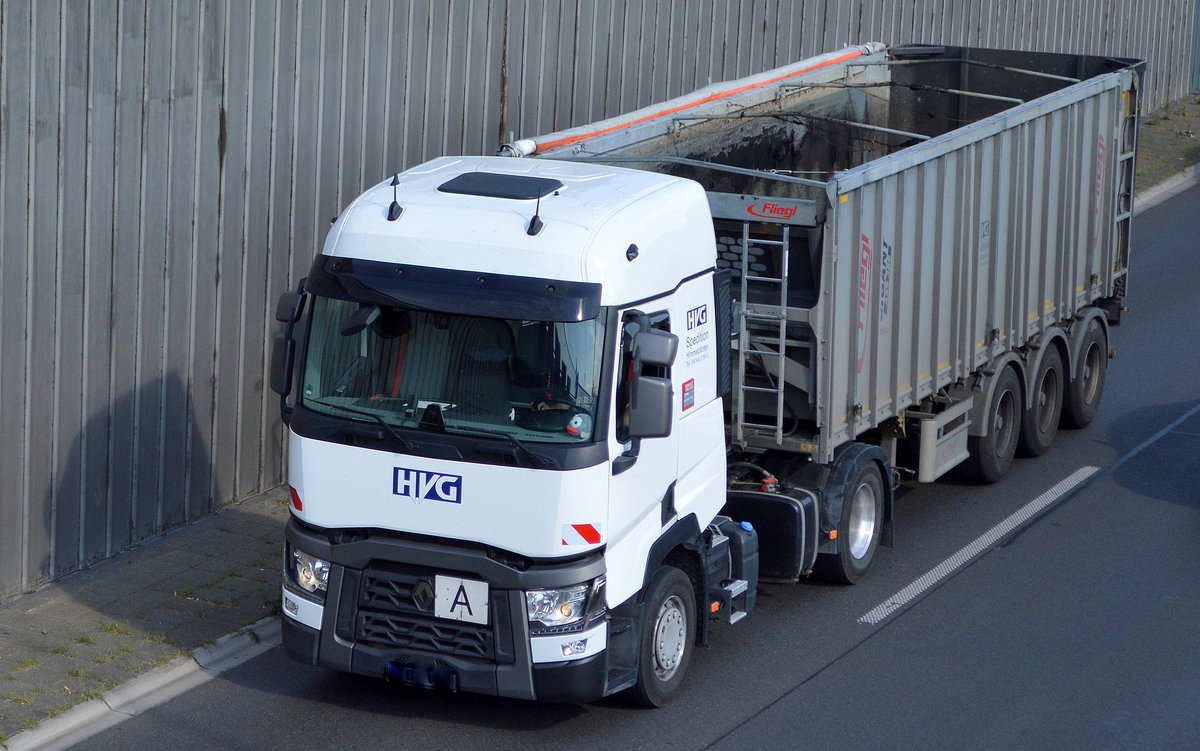 Die Spedition HVG mit einer neuen Renault T PS? Zugmaschine am 09.08.19 Berliner Stadtautobahn Höhe Kaiserdamm.