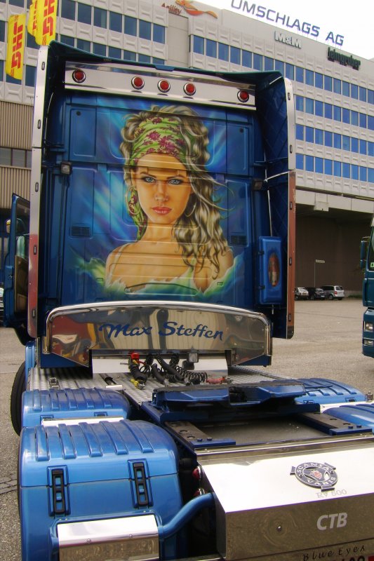 Rückansicht eines sehr schönen Scania auf dem Gelände der UAG in Basel(frei zugänglich)